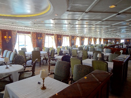 Adonia is the smallest P&O ship, at about 30,000 tonnes. It has a country house feel, but of course moves a bit more in heavy seas - fortunately we didn't really encounter any rough sea on this occasion. | ||